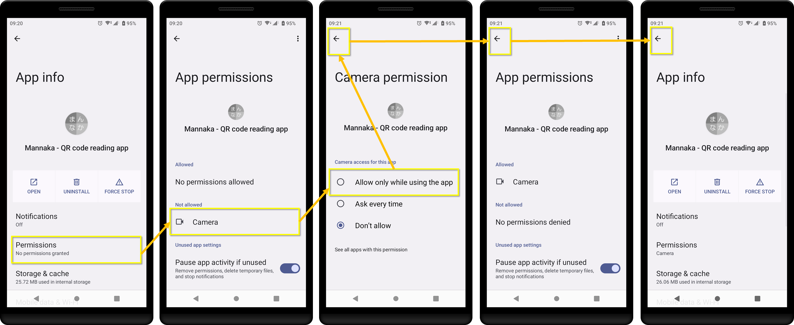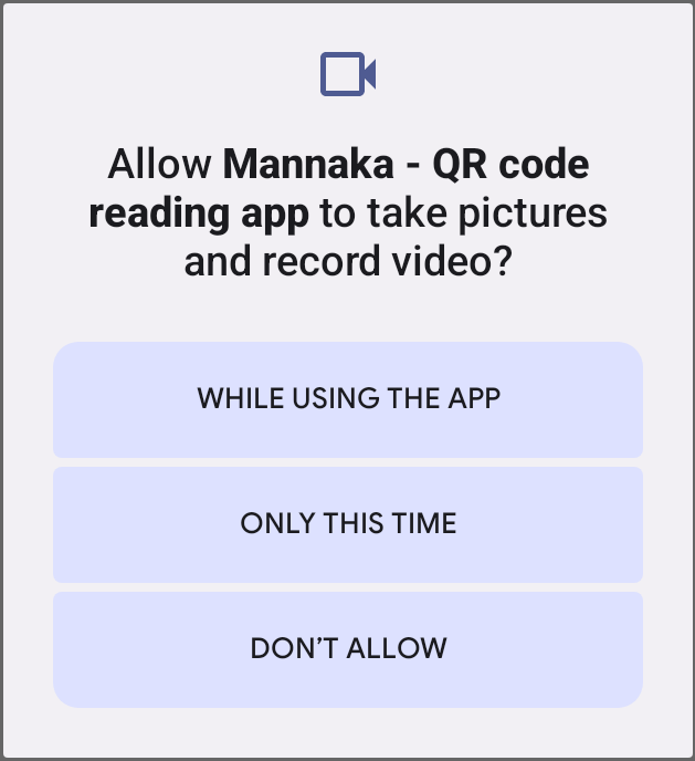 Tap [Permissions], tap [Camera], and then tap [Allow only while using the app].