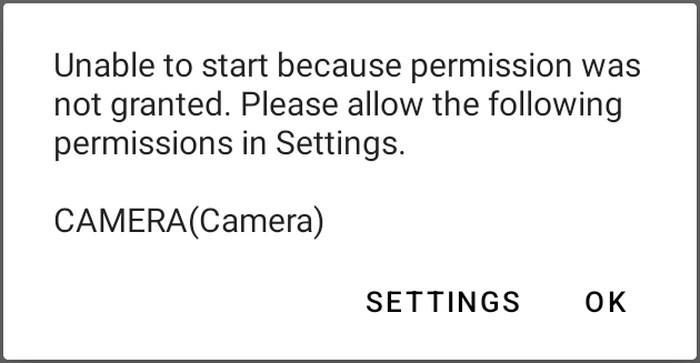 If this dialog appears, you can grant permission manually by tapping [SETTINGS].