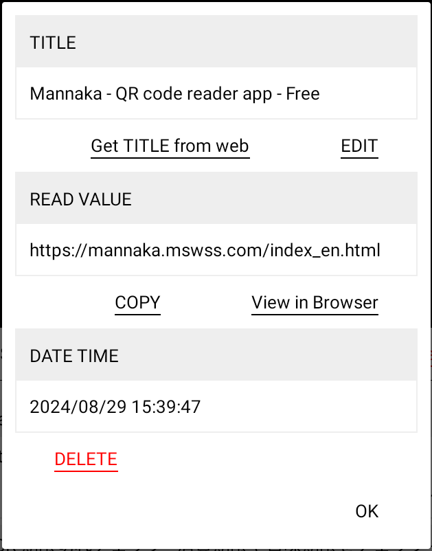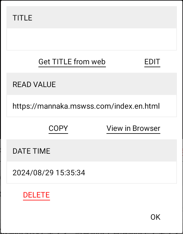 In version 1.0.4, we added a setting to automatically execute [Get TITLE from web] and [View in Browser] when scanning.