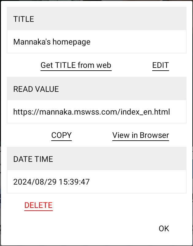 If you tap [View in Browser] below the READ VALUE, if the READ VALUE is a URL, the URL will be displayed in the browser.