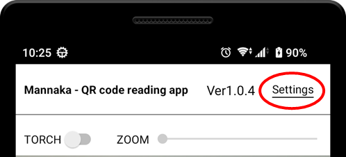 Tap [Settings] in the upper right corner of the screen to display the settings screen.