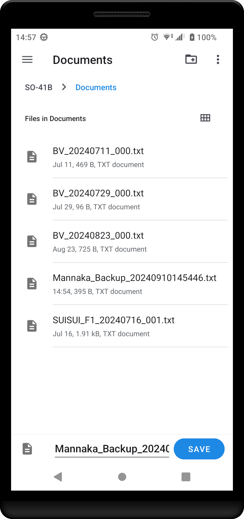 When you tap, a file open dialog will appear. Navigate the folder and tap the backup file you want to restore.